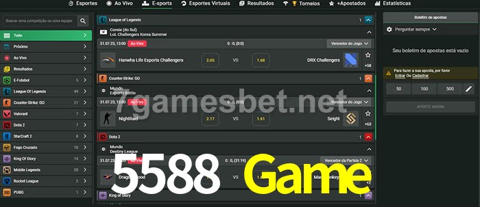 O 5588 Game oferece uma grande seleção de opções de apostas em e-sports com probabilidades competitivas